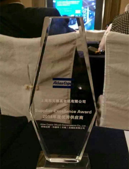 热烈祝贺台湾东元集团上海东元德高电机有限公司获得Altas Copco优良供应商